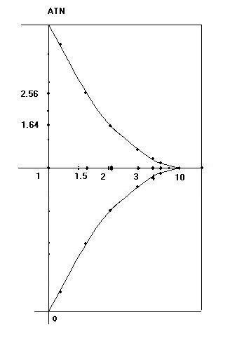 ATN座標の場合は、XY軸の単位の取り方が、1,2,3、ではなく、atn(n)を基準にします。つまり、XY座標での(x,y)は(atn(x),atn(y))
